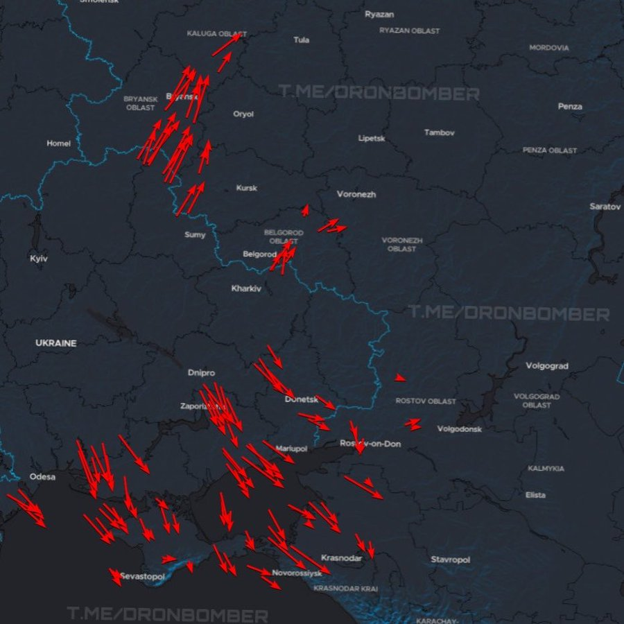 乌克兰昨夜再次出手,向克里米亚以及俄罗斯布良斯克和卡卢加州境内的目标发射了超过 150 架远程无人机。