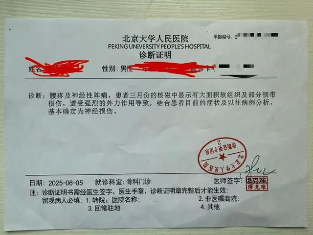【1】当事人:摔蒙圈了,腰部特别麻木